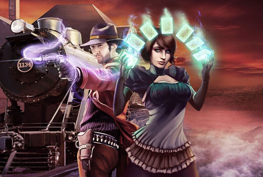 The Americas of the 1880s is a house divided over multiple lines. Strange new science and magic have entered the world. Players play as gunslingers, preachers, charlatans, shaman, frontiersmen, and hucksters. Hucksters wield magic by playing cards with the Devil himself.